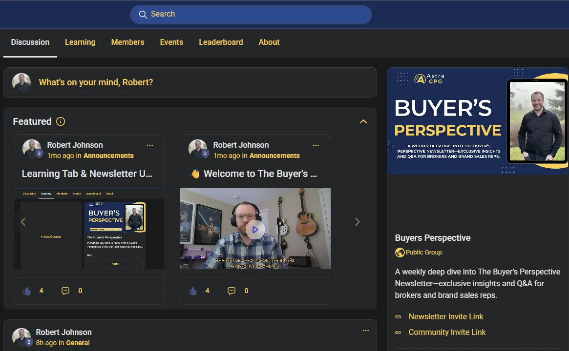 This community is built for CPG brand reps, founders, and brokers who are selling into chain retail. Whether you’re new to the game or have experience but want to improve your process, this is where you’ll sharpen your skills and build stronger buyer relationships.